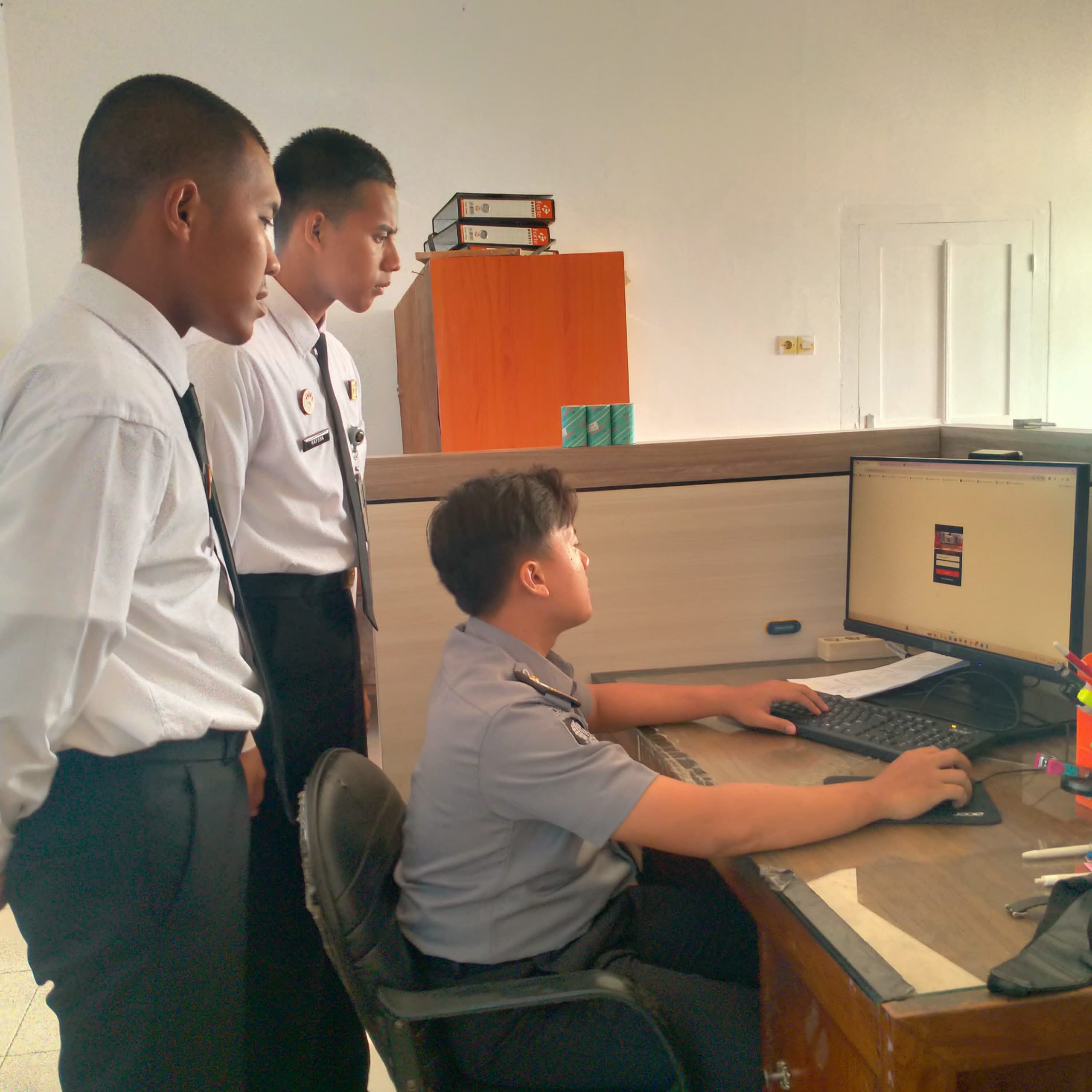 Pukul 09.00 WIB, bertempat di Ruang Umum. Salah satu Staf Umum M Afifudin, selaku operator Sistem Surat Masuk dan Surat Keluar (SISUMAKER) Lapas Kediri memberikan pembelajaran materi terkait teori dan teknis terkait bagaimana distribusi surat masuk dan surat keluar elektronik di lingkungan kementerian hukum dan hak asasi manusia.