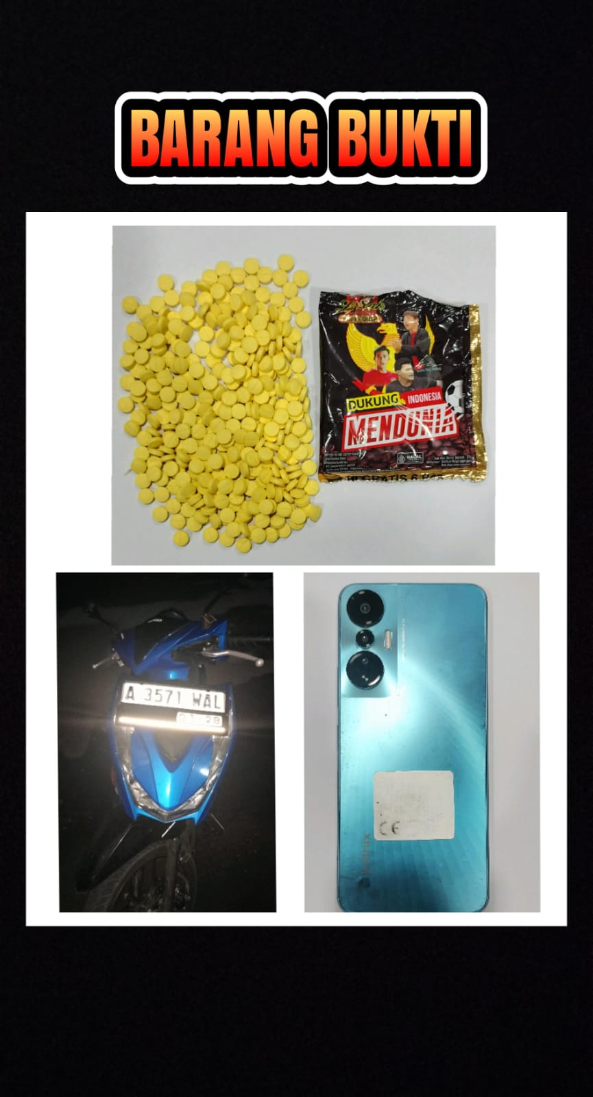 Kanit Reskrim Polsek Balaraja IPTU Suyadi, SH,MH mengatakan pihaknya telah menangkap dan memeriksa Tersangka M.I di jalan raya Serang KM 28 tepatnya di daerah Cangkudu Balaraja, berdasarkan hasil Penyelidikan dari adanya laporan Masyarakat dan setelah beberapa hari di Intai, benar saja yang bersangkutan saat sedang transaksi di pinggir jalan menurut ciri ciri dari laporan dan setelah di adakan penggeledahan di TKP kedapatan membawa 300 (tiga ratus) butir obat warna kuning diduga Obat keras daftar G jenis HEXYMER, yang di bungkus dengan Bekas Cangkang Kopi Luwak yang berada di Jok Motor yang sedang di dudukinya, dan setelah di Interogasi yang bersangkutan mengakuinya, namun sangat di sayangkan pada saat Transaksi tersebut 2 (dua) orang melarikan diri di TKP, setelah menyimpulkan dari hasil Penggeledahan dan Hasil Interogasi di TKP, Tersangka langsung di gelandang ke Polsek Balaraja berikut Barang bukti yang di duga sebagai alat bukti, Tersangka di bawa untuk mendapatkan Pertanggung jawaban atas Perbuatannya.