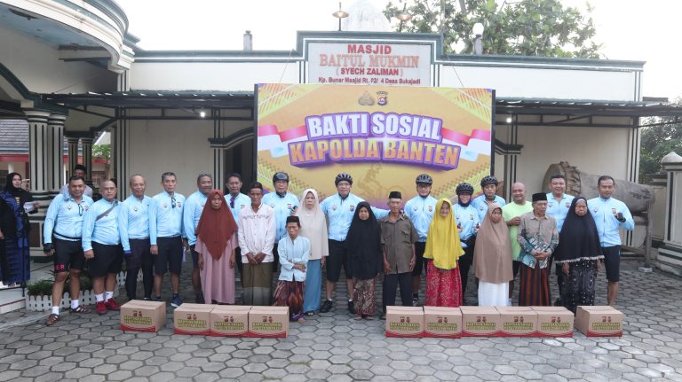 Serkab – Bantenmore.com ¦ Kapolda Banten Irjen Abdul Karim bersama Kapolres Serang AKBP Condro Sasongko serta Para Pejabat Utama Polda Banten dan Polres Serang melaksanakan sepeda santai sambil bakti sosial membagikan paket sembako, pada Selasa (4/6/2024).