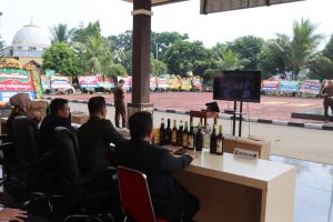 Kegiatan pemusnahan Barang bukti Miras tersebut dilaksanakan secara serentak yang dipimpin oleh Kapolda Banten Irjenpol Abdul Karim, SIK,MSi dan Forkopimda Provinsi Banten yang dilaksanakan secara daring atau live streaming dari Mapolda Banten.