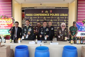Kapolres Lebak Polda Banten AKBP Suyono, SIK mengatakan, “Ya hari ini kami Polres Lebak bersama Forkopimda Lebak melaksanakan Pemusnahan Barang bukti Miras hasil Patroli KRYD di daerah hukum Polres Lebak,” ujar Suyono.