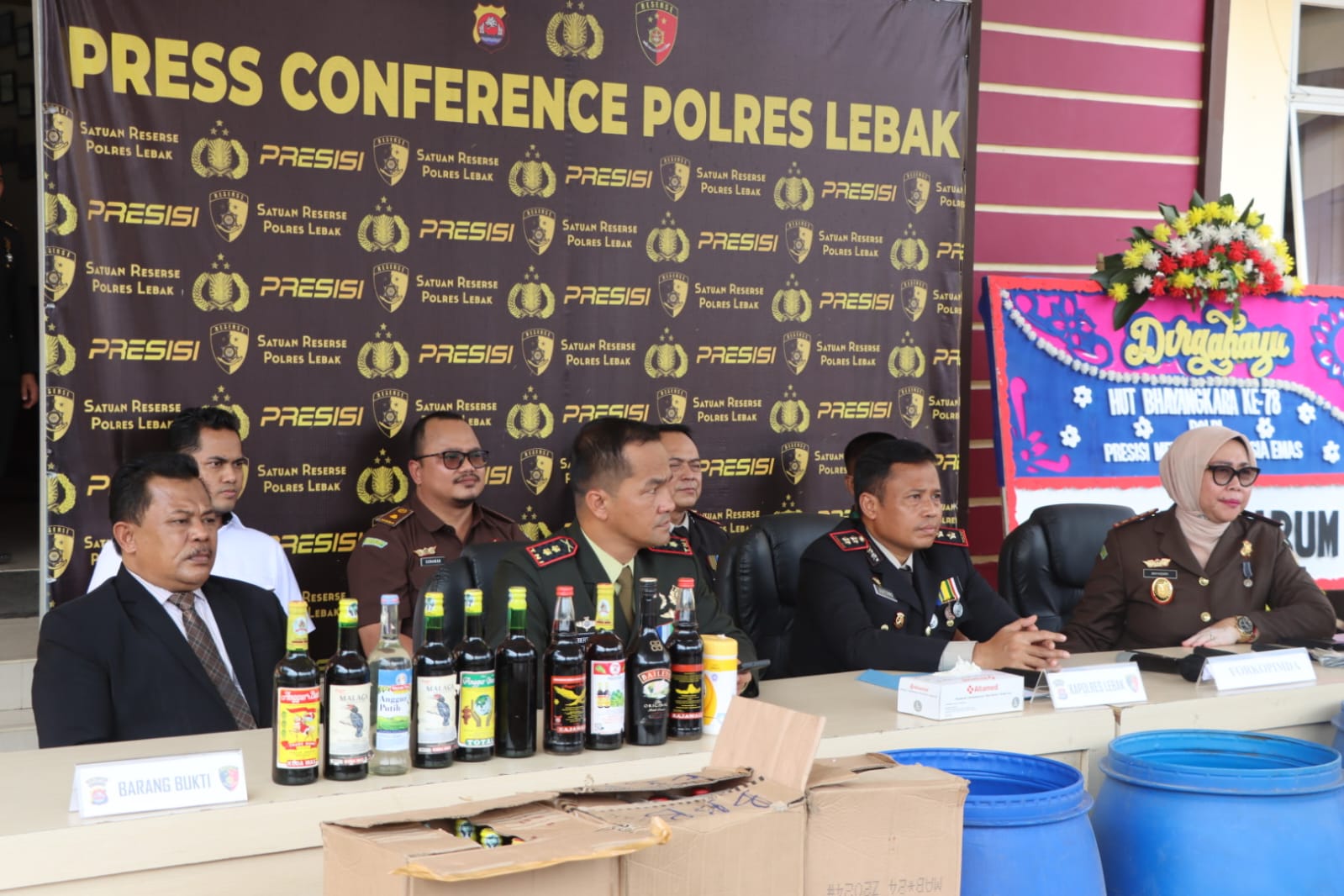 Kapolres Lebak Polda Banten AKBP Suyono, SIK mengatakan, “Ya hari ini kami Polres Lebak bersama Forkopimda Lebak melaksanakan Pemusnahan Barang bukti Miras hasil Patroli KRYD di daerah hukum Polres Lebak,” ujar Suyono.