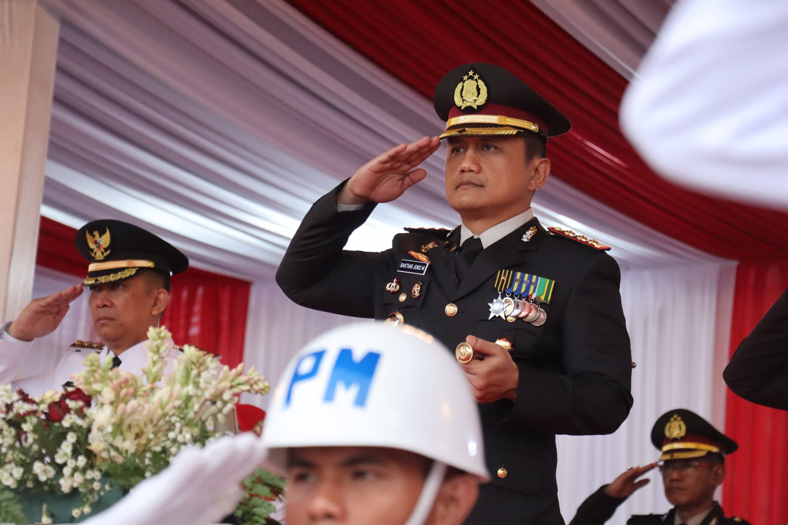 Tangerang – Bantenmore.com ¦ Kapolresta Tangerang Polda Banten, Kombes Pol. Baktiar Joko Mujiono, memimpin upacara penurunan bendera dalam rangka memperingati Hari Ulang Tahun Kemerdekaan Republik Indonesia ke-79. Upacara tersebut berlangsung dengan khidmat di Lapangan Upacara Raden Arta Yudha Negara, Pusat Pemerintahan Kabupaten (Puspemkab) Tangerang, Kecamatan Tigaraksa.