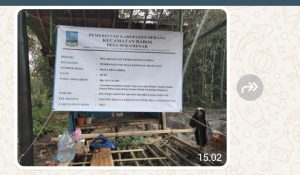 Kades Sukamenak “Atuh papan proyek na mah ti awal geh tos dipasang… Ayeuna teu aya abdi oge naroskeun kamana… Sebab na barang pada ilang termasuk papan cor tiga ikat ilang, dikirim sore besok nya mau dipasang hilang.