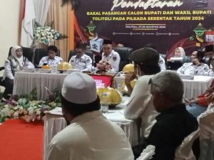 Tolitoli – Bantenmore.com ¦ Kamis (29/08/2024) kira-kira pukul 11.00wita ketua DPC Partai Gerindra turut mendampingi pasangan calon Bupati dan Wakil Bupati Tolitoli Faisal Nurdin dalam kegiatan pendaftaran salah pasangan calon Bupati dan Wakil Bupati di kantor KPU kabupaten Tolitoli.