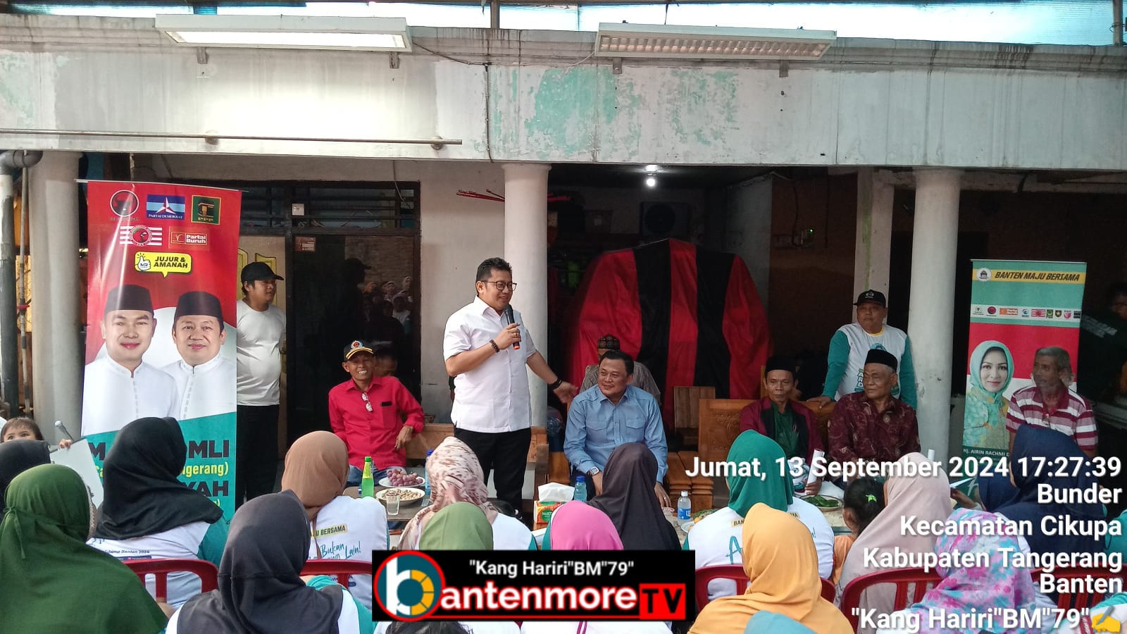 Cikupa – Bantenmore.com ¦ Dalam rangka sosialisasi Calon Wakil Bupati Kabupaten Tangerang, periode 2024-2029, Calon Bupati H. Mad Romli S.H. M.H., H. Irvansyah selaku Wakil Bupati, di kediaman H. Anwar Sadat di RT 011 RW 03 Kampung Bunder, Kelurahan Bunder, Kecamatan Cikupa, Kabupaten Tangerang, Provinsi Banten, pada Jum’at petang, pukul 16.00 s/d 18.00 WIB ( 13/09/2024) yang di sambut dengan antusias warga yang ingin melihat dan bertemu dengan Calon Wakil Bupati Tangerang.