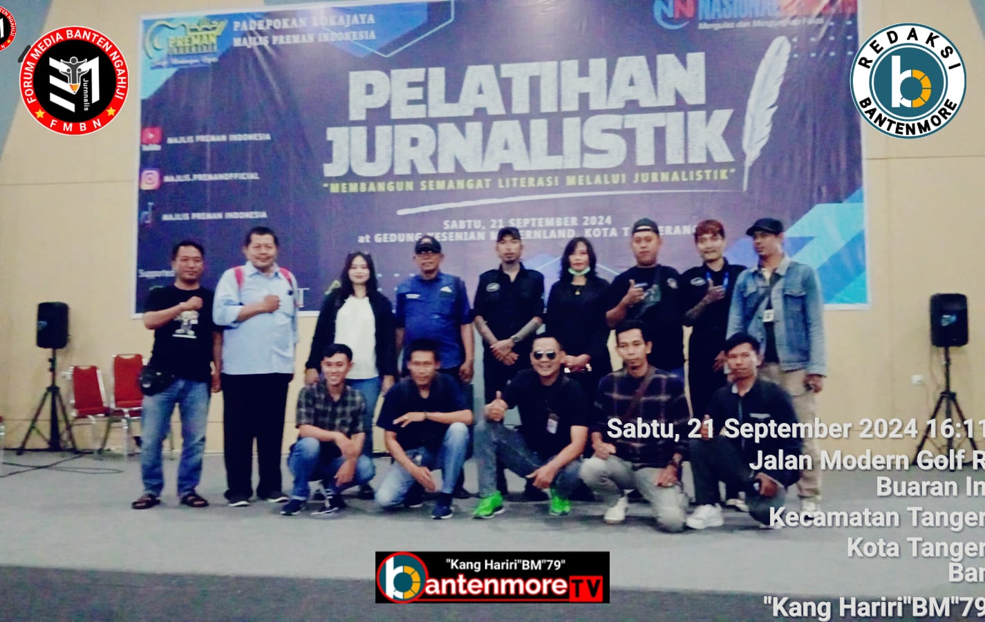 Tangerang Kota – Bantenmore.com ¦ Perwakilan awak Media yang tergabung dalam Forum Media Banten Ngahiji ( FMBN ) menghadiri acara Majlis Preman Indonesia ( MPI ) yang menggelar Pelatihan Jurnalistik, pada Sabtu pagi pukul 09.00 wib s/d pukul 16.30 wib, yang di adakan di Gedung Kesenian dan Budaya Moderland Kota Tangerang. Sabtu (21/09/2024)