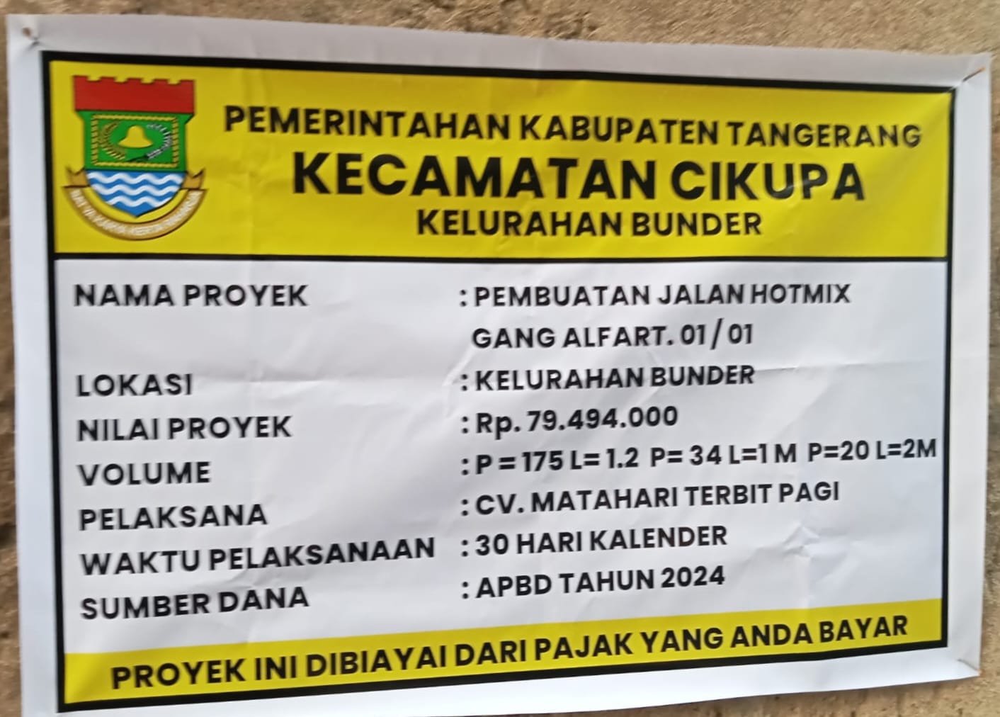 Warga mulai mempertanyakan apakah pengelolaan proyek sudah dilakukan sesuai dengan prosedur dan peraturan yang berlaku. Berdasarkan papan informasi yang terpampang di lokasi proyek, diketahui bahwa proyek ini dikerjakan oleh CV MATAHARI TERBIT PAGI, dengan sumber dana dari APBD 2024.