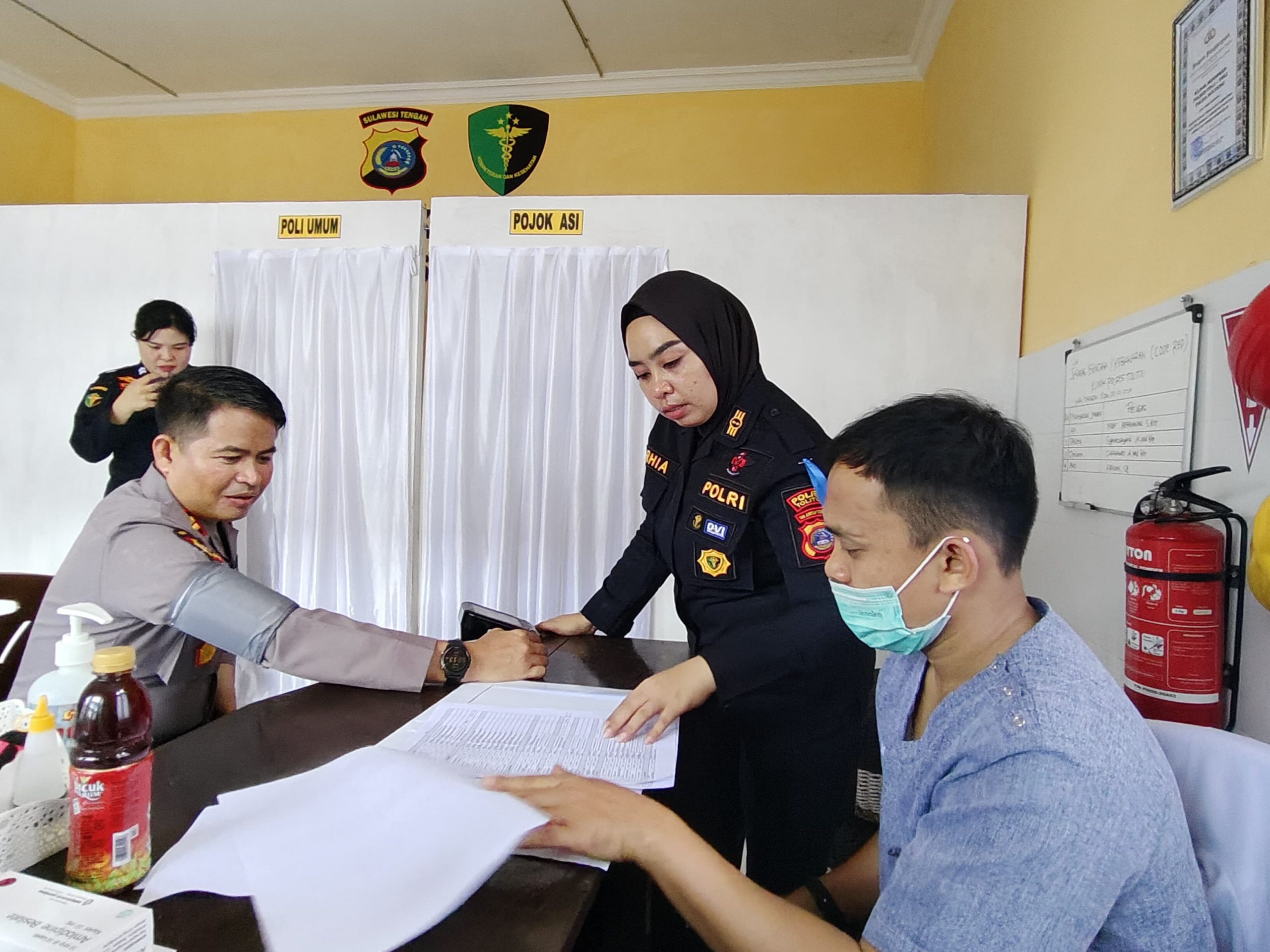 Kasidokkes Polres Tolitoli Penata Syamsuriyani A. Md, Kep bersama Dokter Umum Klinik dr. Ardiansyah bersama Staff Dokkes Polres Tolitoli melakukan sceaning kesehatan pemeriksaan yang meliputi : pemeriksaan fisik yakni; pemeriksaan berat badan dan tinggi badan, melakukan Pemeriksaan tanda- tanda vital yakni; pemeriksaan tekanan darah, nadi, spo- spo dan respirasi. Dan , anamnesa keluhan dan pengobatan sehari-hari.