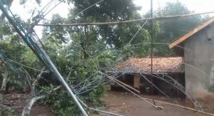 “Angin sangat kencang mengakibatkan beberapa pohon tumbang, yang menimpah kabel listrik dan rumah warga, bahkan ada juga atap rumah berterbangan akibat terkena angin yang sangat kencang. Bahkan Saat ini kondisi listrik mati total. “Ungkapnya