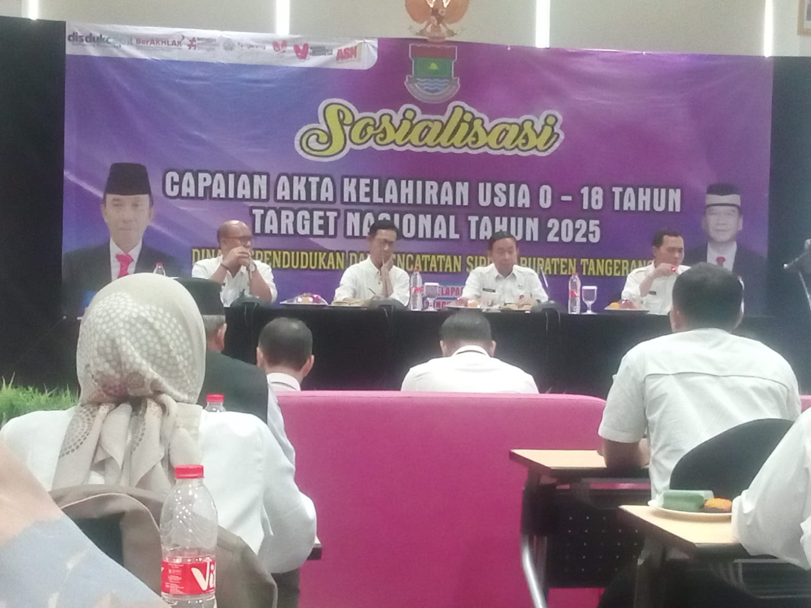 Tangerang – Bantenmore.com ¦Dinas Kependudukan Dan Catatan Sipil Kabupaten Tangerang, telah melaksanakan “Sosialisasi Capaian Akta Kelahiran Usia 0-18 Tahun” yang melibatkan seluruh Staf Pemerintah Desa Se-Kabupaten Tangerang di Fame Hotel Kelapa Dua, hal ini adalah upaya peningkatan pelayanan catatan sipil khususnya akta kelahiran, sekaligus mensosialisasikan akan pentingnya data kependudukan. Rabu (20/11/24)