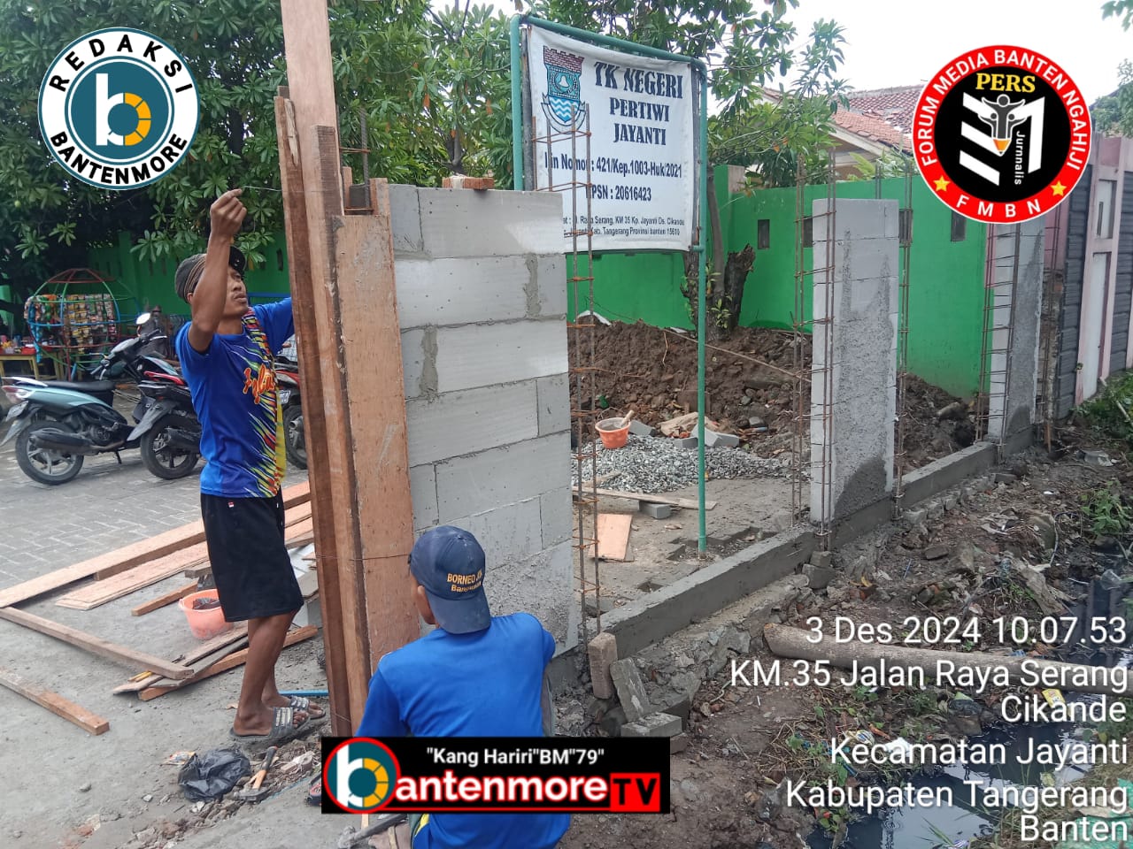 Jayanti – Bantenmore.com ¦ Dinas Pendidikan Kabupaten Tangerang sedang melaksanakan pembangunan pagar sekolah TK NEGRI JAYANTI, yang berlokasi di jalan Raya Serang KM 35, Desa Cikande, Kecamatan Jayanti, Kabupaten Tangerang -Banten. Selasa (03/12/24)