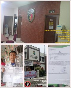 Hasil penelusuran awak media bantenmore.com ke Sentral Pelayanan Kepolisian Terpadu (SPKT) dan Team 1 Reskrim Polsek Pinang Polres Metro Tangerang Kota membenarkan, bahwa telah menerima pengaduan atau pelaporan sesuai dengan laporan Polisi : LP. B/468/XII/2024/SPKT/POLSEK PINANG/POLRES METRO TANGERANG KOTA/POLDA METRO JAYA, dari pihak Korban saudara Budi (pelapor) atas Kejadian diduga Penipuan dan atau penggelapan berupa 1 (satu) Unit kendaraan roda dua Honda PCX warna Hitam Tahun 2024 No.Pol : B-3917-CUY, No.Rangka : MH1KF7111RK962018, No.Mesin : KF71E1961934, Atas Nama Pelapor. Dengan Awal mula kejadian ; pada saat pelapor berangkat kerja sesampai di alamat TKP ada 6 (Enam) orang yang Tidak dikenal menggunakan 3 (Tiga) Kendaraan roda dua masing-masing berboncengan kemudian pelapor di berhentikan dengan alasan kendaraan pelapor belum dibayarkan cicilan pertama lalu pada saat itu kunci dan kendaraan pelapor dibawa orang-orang yang tidak dikenal tersebut. Berikut Dompet pelapor yang berisikan KTP Asli dan SIM C yang di simpan di dalam Jok motornya, saat ini dalam penyelidikan lebih lanjut.”pungkasnya