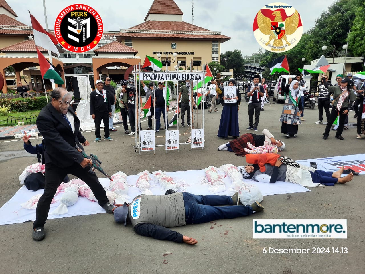 “Maka, kami dari Gerakan Solidaritas Masyarakat Tangerang dan Jurnalis Peduli Palestina, mendesak Pemerintah Indonesia untuk segera membuat pernyataan resmi tangkap PM Israel Benjamin Netanyahu,” tegas dia.