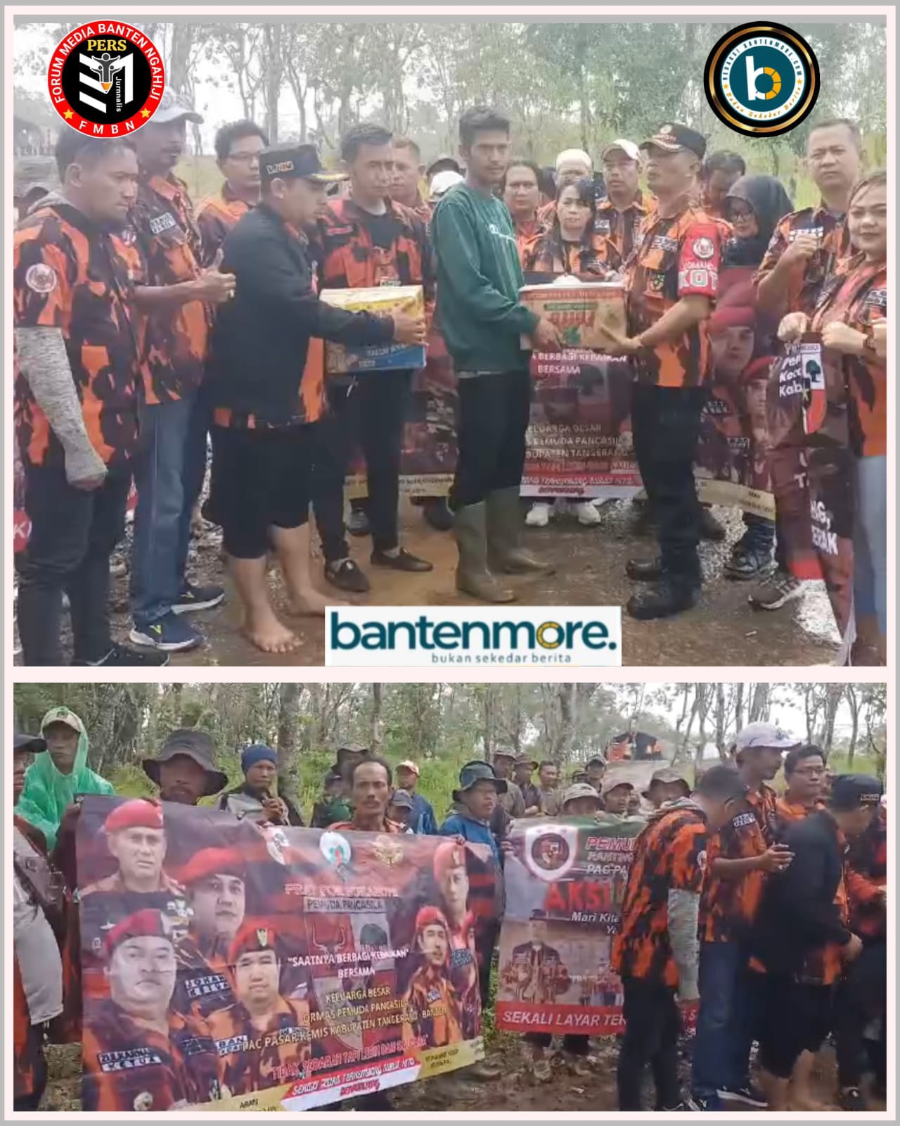 Bantuan berupa mie instan, (sembako) langsung diserahkan ke warga terdampak bencana banjir bandang, Tanah Longsor oleh Dankoti HARYADI dan ABAN selaku sekretaris MPC Pemuda Pancasila Kabupaten Tangerang.