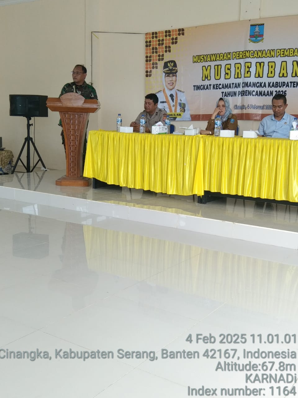 Tuti Setiawati, dalam Sambutannya Kami Ucapkan banyak terimakasih untuk para undangan yang telah menghadiri acara ” Musyawarah Perencanaan Pembangunan (Musrembang), untuk Perencanaan tahun 2026. Acara Musrembang ini bertempat di Aula Kantor Kecamatan Cinangka, Selasa (04/02/25).