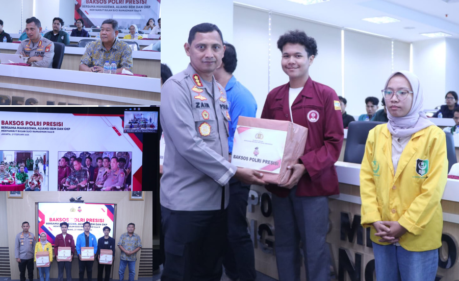 Tangerang Kota – Bantenmore.com ¦ Dalam rangka menyambut datangnya bulan suci Ramadhan 1446 Hijriah/2025 Masehi, Polres Metro Tangerang Kota, Polda Metro Jaya melaksanakan Bakti Sosial Polri Presisi. Bersama dengan Mahasiswa, aliansi Badan Ekskutif Mahasiswa (BEM) dan organisasi kepemudaan (OKP) se-Tangerang.