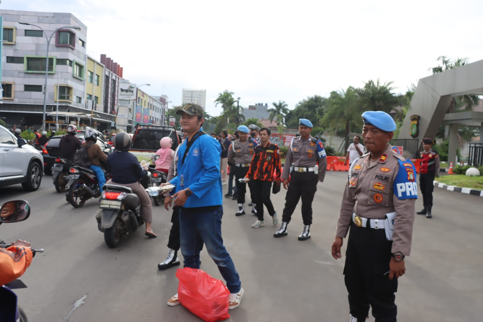 Tangerang – Bantenmore.com ¦ Gandeng 14 elemen Mahasiswa dan Organisasi Kepemudaan (OKP) Polres Metro Tangerang Kota, Polda Metro Jaya gelar kegiatan bagi-bagi takjil gratis di depan Pintu Gerbang Mapolres di Jalan Perintis Kemerdekaan No.2, Babakan, Kota Tangerang. Jum’at (7/3/2025) sore WIB.