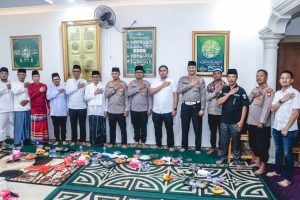 Tangerang Kota – Bantenmore.com ¦ Pererat silaturahmi, Kapolres Metro Tangerang Kota bersama sejumlah Pejabat Utama (PJU) Polres Metro Tangerang Kota melaksanakan silaturahmi dan buka puasa bersama (bukber) di kediaman Ketua Dewan Masjid Indonesia (DMI) Provinsi Banten, KH. Bunyamin Hafidz di Jalan Gajah Mada, Pakojan, Kecamatan Pinang.