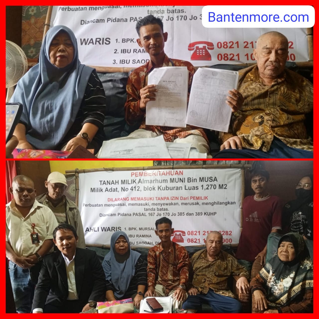Kota Tangerang – Bantenmore.com ¦ Ahli waris tanah milik almarhum Muni bin Musa menegaskan hak kepemilikan mereka atas lahan seluas 1.270 m2 yang terletak di Blok Kuburan, Kampung Panunggangan , Kelurahan Panunggangan Barat Kecamatan Cibodas kota Tangerang Banten Melalui pemberitahuan resmi, mereka mengingatkan bahwa tanah tersebut tidak boleh dimasuki tanpa izin dari para ahli waris yang sah. Jum’at (14/03/25)