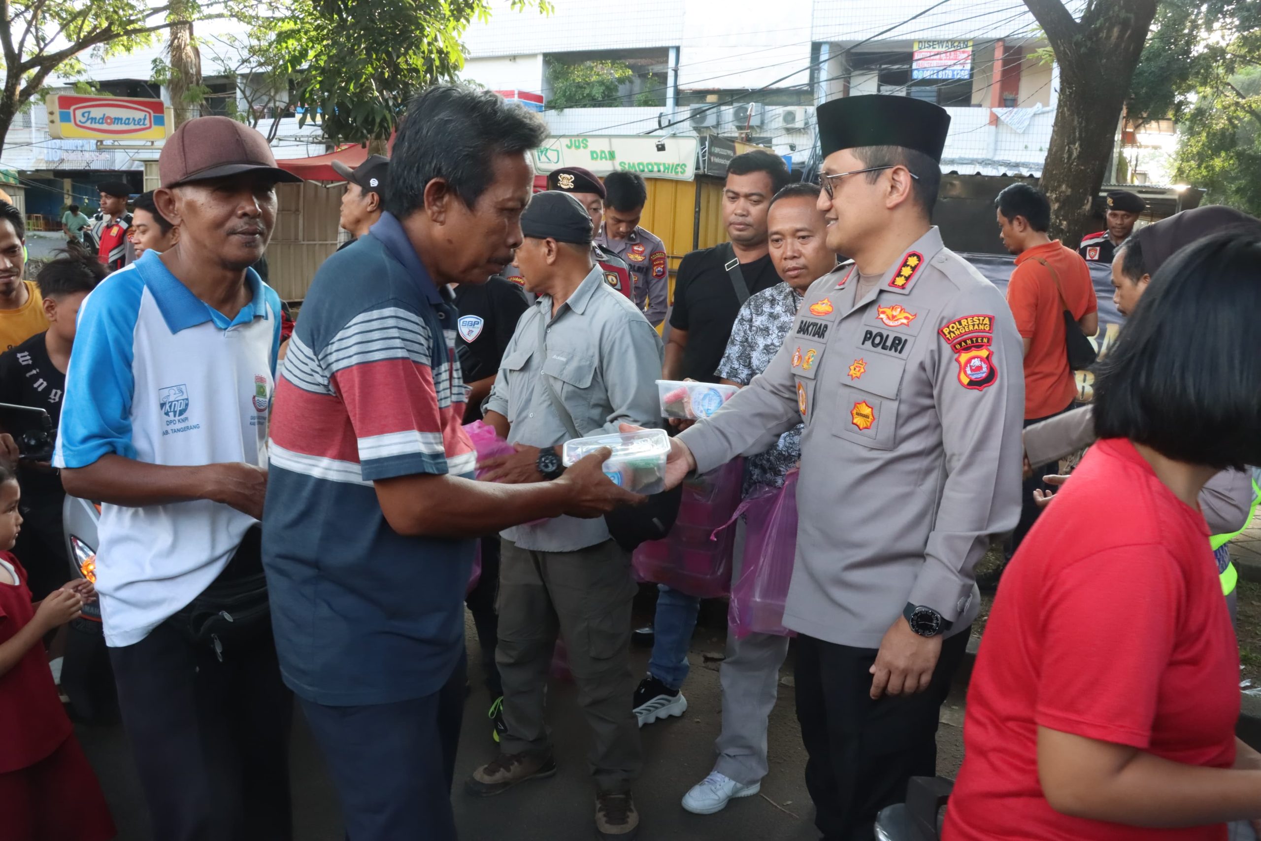 Dimulai pada pukul 16.30 WIB, ratusan paket takjil dibagikan kepada masyarakat yang melintas di kawasan Alun-Alun Tigaraksa. Kapolresta Tangerang menyampaikan bahwa kegiatan ini merupakan bentuk kepedulian Polresta Tangerang terhadap masyarakat yang tengah menjalankan ibadah puasa.