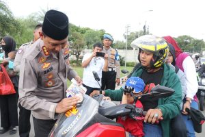 Dalam sosialisasinya, Kapolres, Kombes Pol Zain Dwi Nugroho membagikan selebaran berisi informasi layanan Pengaduan Polri di 110.Sosialisasi itu dilakukan sejak Kamis, (13/3/2025) kemarin hingga puncak mudik lebaran 2025.