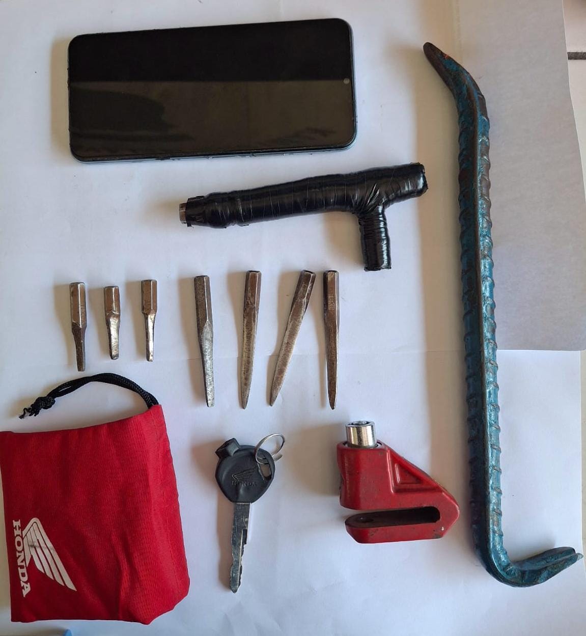 Lanjut Prapto, saat dilakukan pemeriksaan di TPK dari dalam sepeda motor yang digunakan terduga kedua pelaku ditemukan barang bukti kunci leter T dan 7 anak mata kunci palsu di kantong kunci berwarna merah.