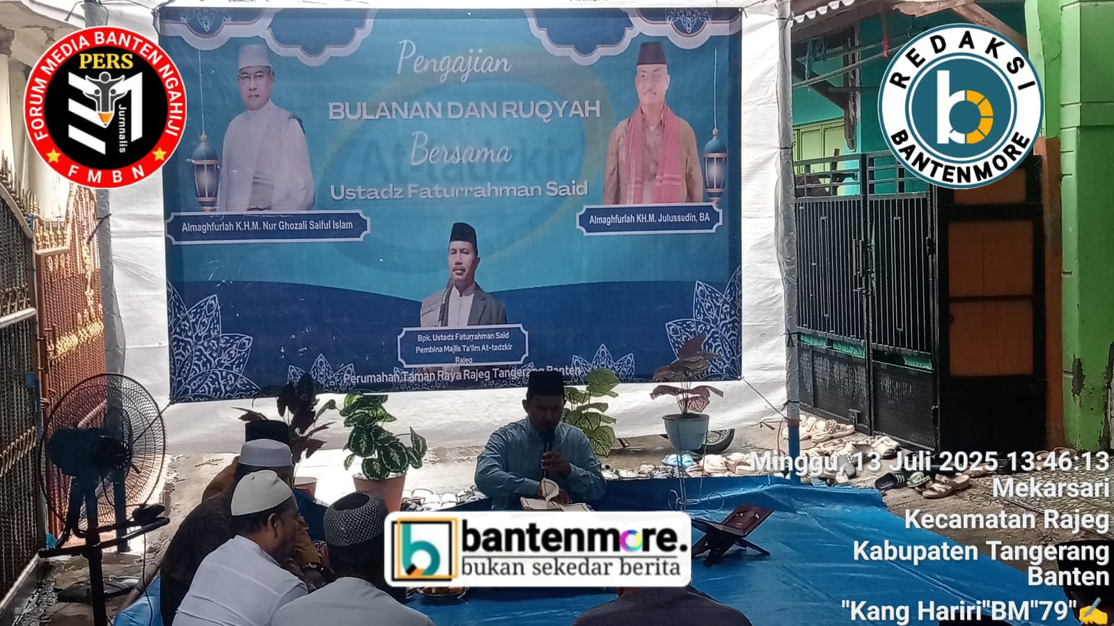 Tangerang – Bantenmore.com ¦ Walaupun diguyur hujan, Keluarga Besar Kaperwilprov Banten Media Bantenmore.com dan Kabidhumas Forum Media Banten Ngahiji (FMBN). Kang Hariri “BM”79″, menghadiri pengajian bulanan dan ruqiyah bersama Ustadz Faturrahman Said, Pembina Majelis Ta’lim At-Tadkir di Taman Raya Rajeg, Kabupaten Tangerang, Banten.
