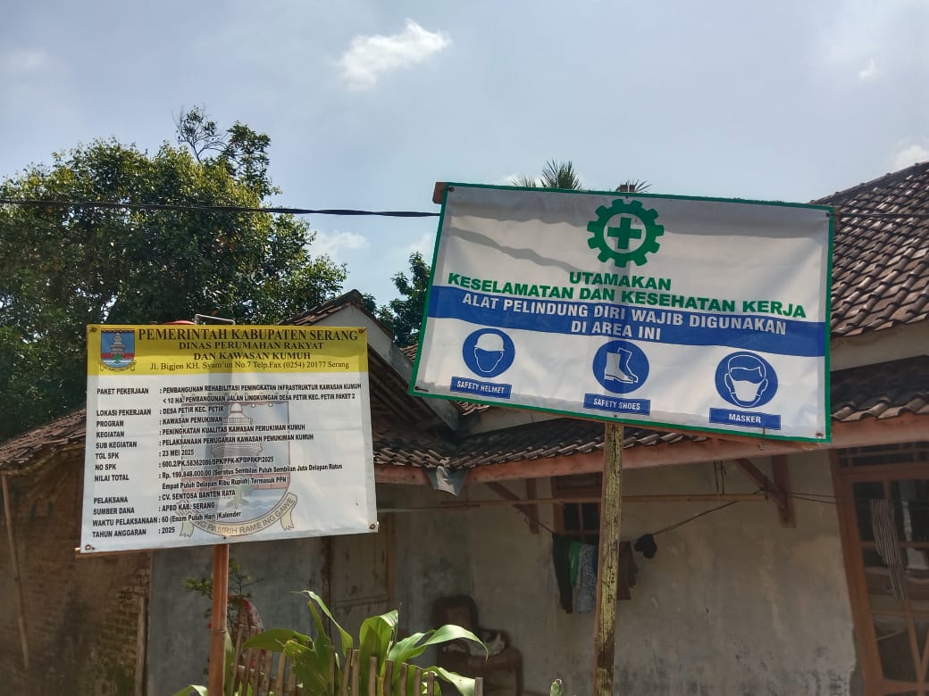 Serang – Bantenmore.com ¦ Program Pembangunan Rehabilitasi Peningkatan Insfratruktur Kawasan Kumuh < 10 HA, Dinas Perkim Kabupaten Serang, di Desa Petir Kecamatan Petir Kabupaten Serang, Banten. Pengawasan dari OPD Dinas Perkim Kabupaten Serang patut di pertanyakan. Jum’at (25/7/25)