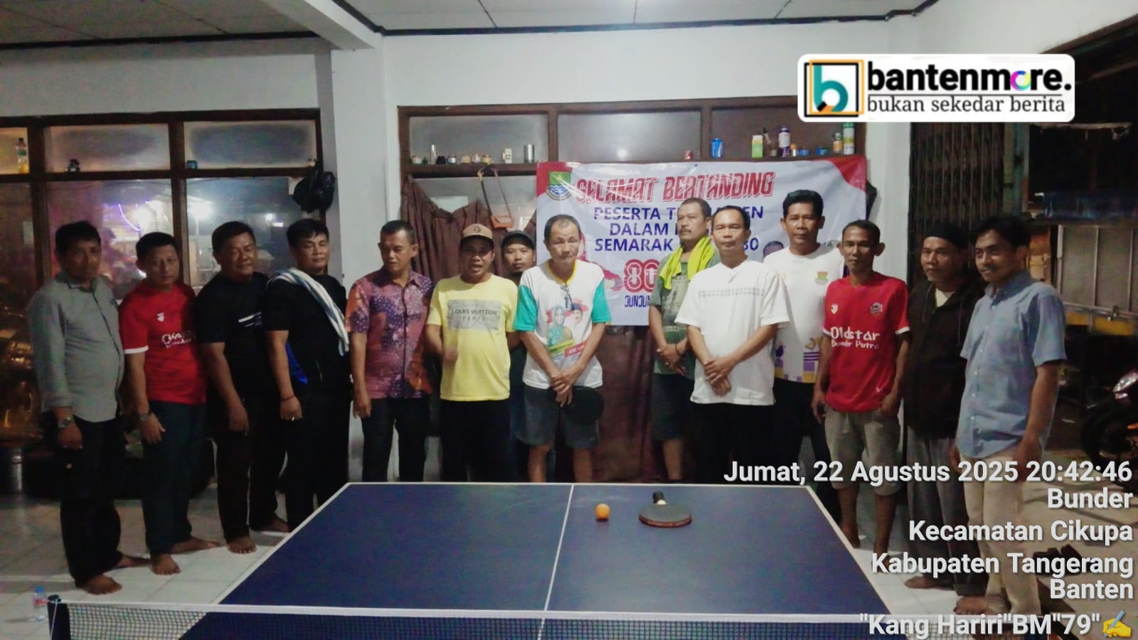 Tangerang – Bantenmore.com ¦ Pemerintah Kelurahan Bunder, Kecamatan Cikupa, Kabupaten Tangerang, Provinsi Banten, mengadakan Open Turnamen Tenis Meja Antar RT se-Kelurahan Bunder dalam rangka memperingati Hari Ulang Tahun Kemerdekaan Republik Indonesia (HUT RI) ke-80. Acara ini digelar oleh Sekretaris Kelurahan Bunder, Deden Yaya Rosandi, yang mewakili Kepala Kelurahan Bunder, Hj. Ine Susilawati, S.IP., A. Md., Kep., SKM. Jum’at (22/8/25)