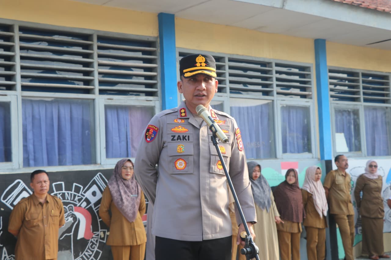 Lebak – Bantenmore.com ¦ Guna mencegah terjadinya kenakalan remaja serta masuknya paham radikalisme (Kekerasan) di kalangan pelajar, Kapolres Lebak Polda Banten AKBP Herfio Zaki, S.I.K., M.H., menjadi Inspektur Upacara sekaligus memberikan sosialisasi di SMK Setiabudi Rangkasbitung, Senin (8/9/2025).