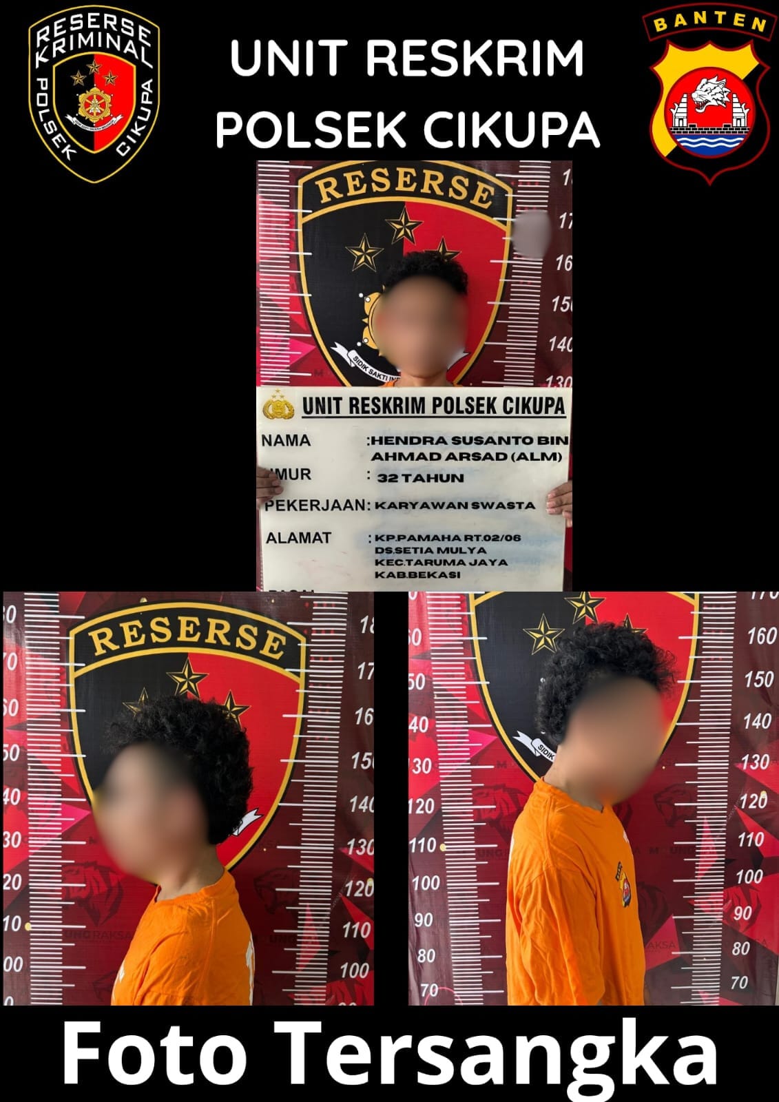 Tim Unit Reskrim Polsek Cikupa yang dipimpin Kanit Reskrim Ipda Syaiful Rusdiansyah, S.H. berhasil menangkap tersangka pada Kamis, 18 September 2025 sekitar pukul 11.00 WIB di kontrakannya yang berada di Kampung Samprok, Sukamulya. Barang bukti yang diamankan antara lain fotokopi BPKB dan STNK, satu unit handphone, serta pakaian yang dikenakan tersangka saat beraksi.