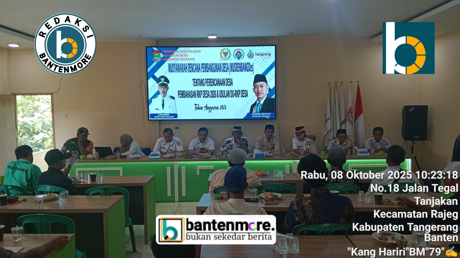 Rajeg – Bantenmore.com ¦ Musyawarah Rencana Pembangunan Desa (Musrenbangdes) Tanjakan Rajeg untuk Anggaran Tahun 2025-2026 telah sukses digelar pada Rabu, 8 Oktober 2025, di Gedung Aula Lantai 2 Desa Tanjakan Rajeg. Acara ini dihadiri oleh berbagai tokoh penting, termasuk Sekretaris Camat Rajeg H. Deni Septiawan, S.Sos., M.Si., Kepala Desa Tanjakan Rajeg Saumin beserta stafnya, Babinsa, Sekretaris Desa, Ketua BPD Desa Tanjakan Rajeg, Ketua Karangtaruna, Ketua RW/Jaro, Ketua RT se-Desa Tanjakan Rajeg, Tokoh Masyarakat setempat, Tokoh Agama setempat, dan tamu undangan lainnya.