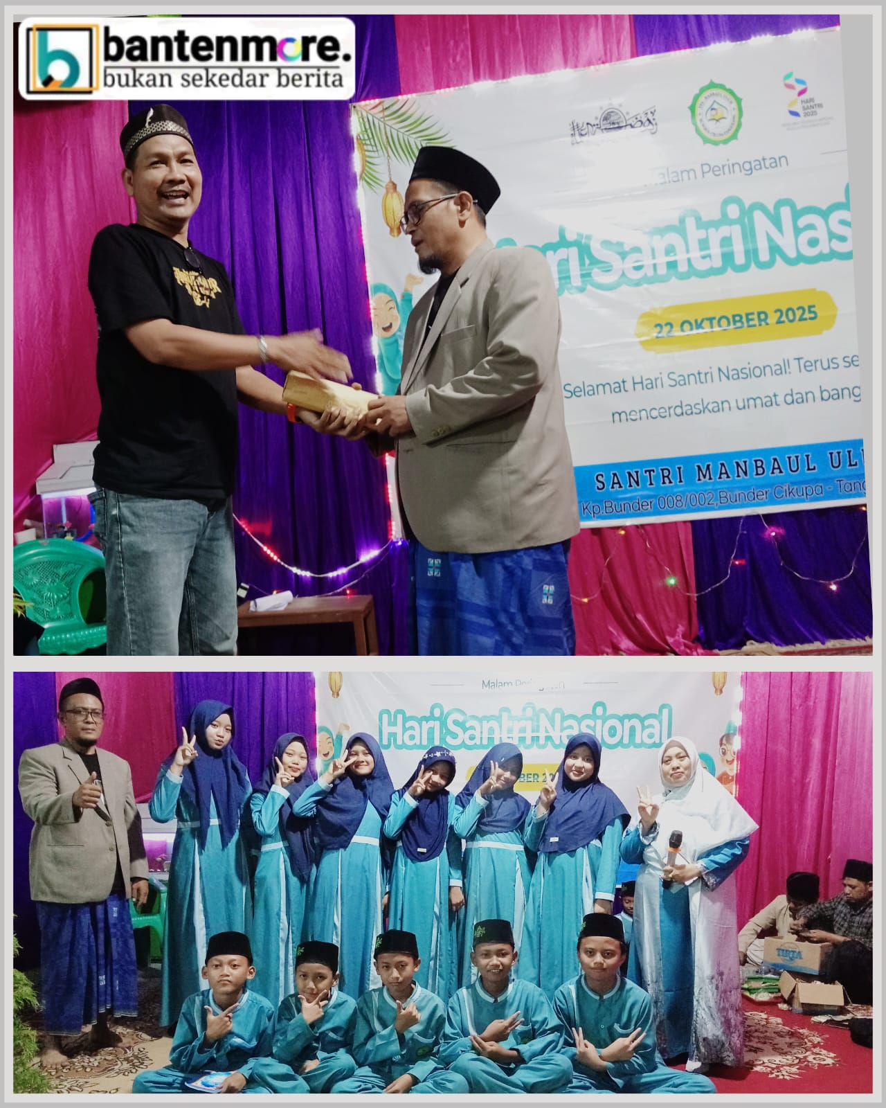 Cikupa – Bantenmore.com ¦ Majelis Dzikir dan Ta’lim Manbaul Ulum TPA, TPQ, yang beralamat di Jl. Telesonik Ujung KM.8, Kampung Bunder RT 008 RW 02, Gang Masjid Jami Nurul Yaqin, Kelurahan Bunder, Kecamatan Cikupa, Kabupaten Tangerang, Provinsi Banten, sukses menggelar perayaan Hari Santri Nasional (HSN), 22 Oktober 2025 di Aula Majelis Ta’lim Manbaul Ulum pada Jum’at malam (24/10/2025).