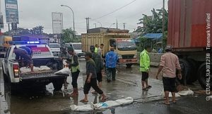 Zaeni menambahkan, personel Satlantas melakukan penambalan sementara menggunakan material bata, paving block, serta pasir aspal guna menutup lubang-lubang yang dinilai paling berbahaya. Selama proses perbaikan berlangsung, ujar dia, arus lalu lintas terpantau ramai namun tetap lancar dengan pengaturan petugas di lapangan.