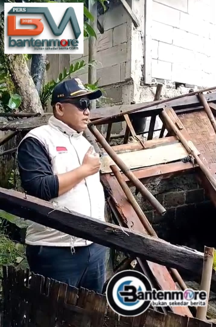 Tangerang – Bantenmore.com ¦ Akibat curah hujan yang sangat tinggi dan angin kencang, hingga menghancurkan rumah warga, BHS (Kepala Desa Badak Anom) meninjau langsung rumah roboh milik warga yang terkena dampak angin kencang puting beliung di Kampung Onom RT 01/03 Desa Badak Anom Kecamatan Sindang Jaya Kabupaten Tangerang. Jum’at (23/1/26)