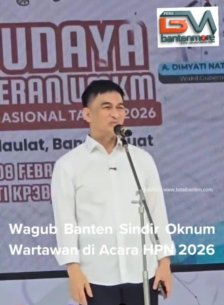 Serang – Bantenmore.com ¦ Pada saat peringatan Hari Pers Nasional ( HPN ) tahun 2026 Wakil Gubernur Provinsi Banten, Achmad Dimyati Natakusumah, menekankan pentingnya peran pers sebagai mitra pemerintah dalam melaksanakan pembangunan dan mengabarkan informasi kepada publik. Ia mengajak insan pers untuk memperkuat sinergi dan berperan aktif mengawal pembangunan daerah. Senin (09/02/2026)