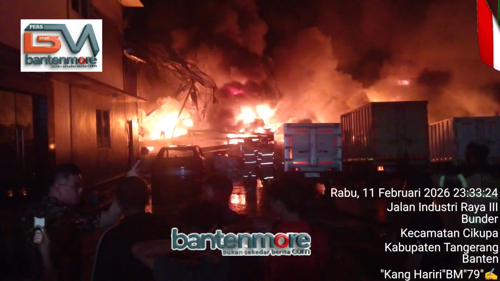Petugas BPBD Kabupaten Tangerang, Tim Polsek Cikupa, Unit Reskrim, Bhabinkamtibmas, Bhabinsa, Lurah Bunder didampiingi Ketua RT 012 dan Ketua RW 03 juga anggota Trantib Linmas Kelurahan Bunder. Masih standby berjaga-jaga di lokasi TKP untuk mengatur lalu lintas dan memantau situasi. Api diperkirakan padam pukul 03.00 WIB (Kamis,12/02/2026) dan tim Damkar saat ini masih terus bekerja guna melakukan pendinginan dan penyelidikan lebih lanjut.