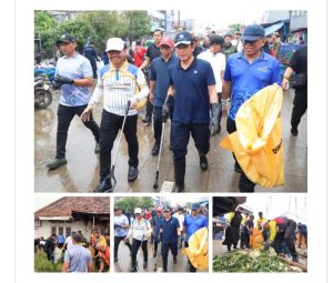 Berjalan kompak, korvei kerja bakti kali ini menyasar sejumlah titik di kawasan Pasar Anyar mulai dari akses jalan, area parkir, sampai area pasar bersama para pedagang yang turut berpartisipasi.