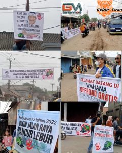 Aksi warga juga diwarnai spanduk bergambar Kang Dedi Mulyadi (Gubernur Jawa Barat) yang disebut sebagai sindiran sekaligus harapan agar kepala daerah meniru gaya kepemimpinan yang aktif turun langsung ke lapangan.