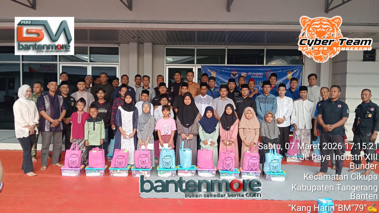 Tangerang – Bantenmore.com ¦ PT. Mega Darma Yudha (MDY) didukung Serikat SPSI PT Dolphin Food dan Beverages, gelar santunan anak yatim di halaman PT Dolphin Kawasan industri III Kelurahan Bunder RT 013 RW 02 Kelurahan Bunder Kecamatan Cikupa Kabupaten Tangerang-Banten, Sabtu (07/03/2026).