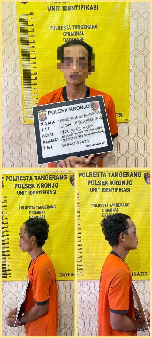 “Berkat bantuan warga dan patroli Polsek Kronjo, satu orang pelaku berhasil diamankan, yakni Ahmad Yusa (22) warga Kabupaten Lebak,” tambahnya.