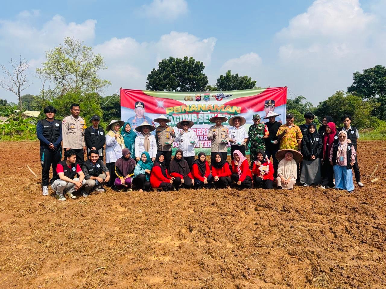 Tangerang – Bantenmore.com ¦ Dalam upaya mendukung program (PAT) Perluasan Area Tanam guna dukung swasembada pangan nasional tahun 2025, Polresta Tangerang bersama jajaran Forkompincam Panongan dan stakeholder terkait melaksanakan kegiatan Penanaman Jagung Serentak Program (PAT) pada Rabu (06/08/2025) pukul 09.00 WIB, bertempat di kampung panyembir RT.003/001 desa serdang kulon Kecamatan Panongan Kabupaten Tangerang.